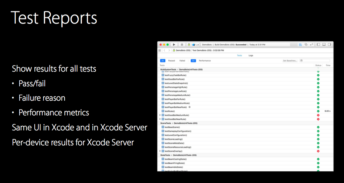 - Per-device results for Xcode Server