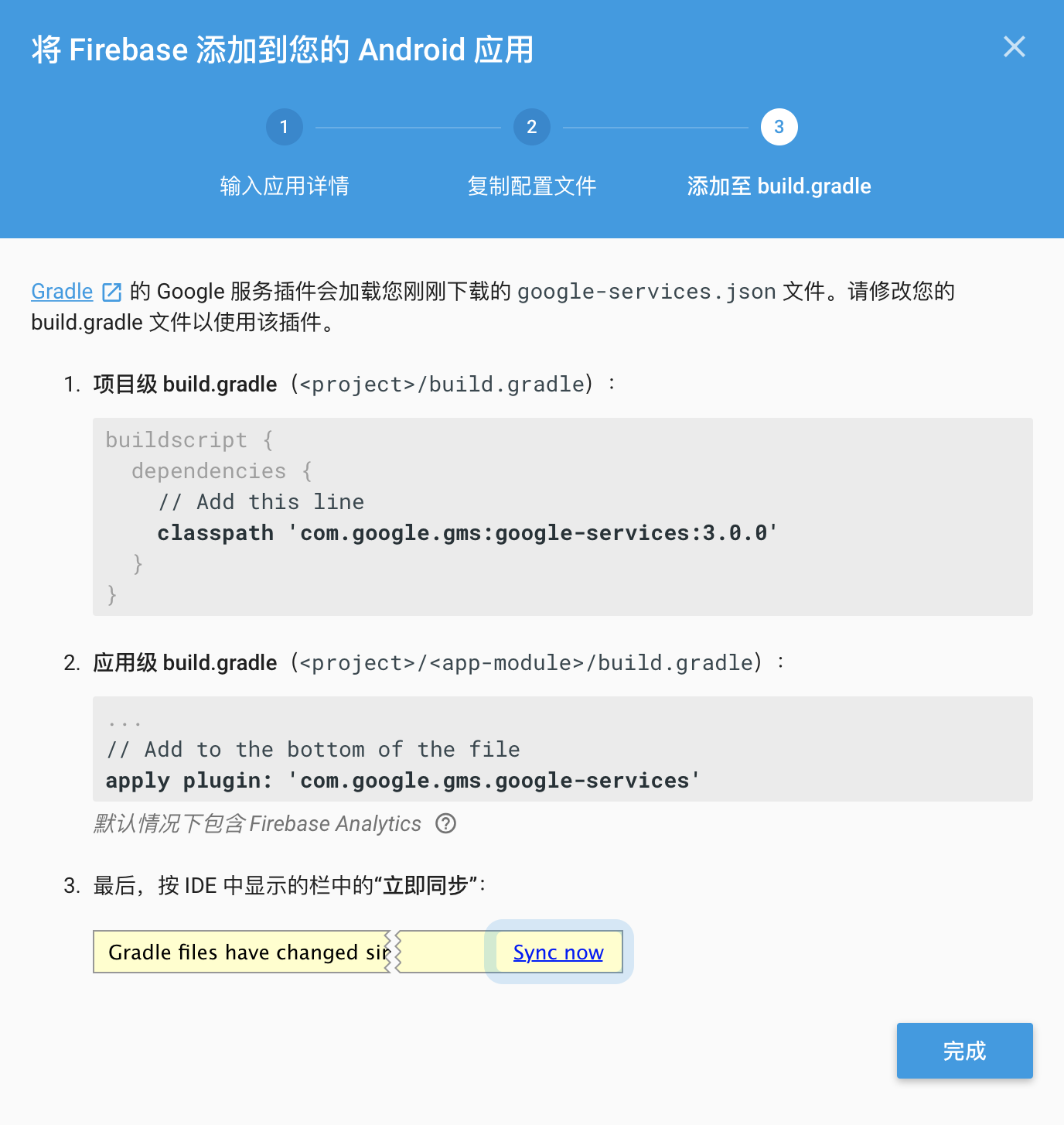 注:如果您有多个构建变体含有已定义的不同包名称,则必须在 Firebase console 中将每个应用添加到您的项目。